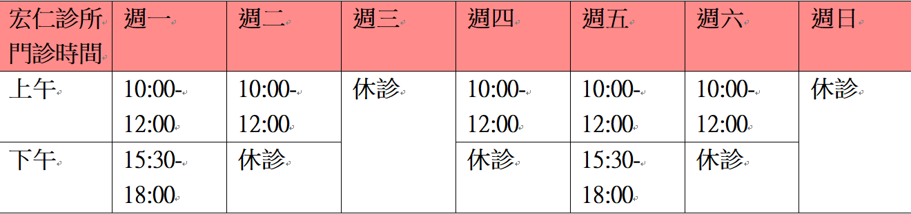 宏仁診所門診時間