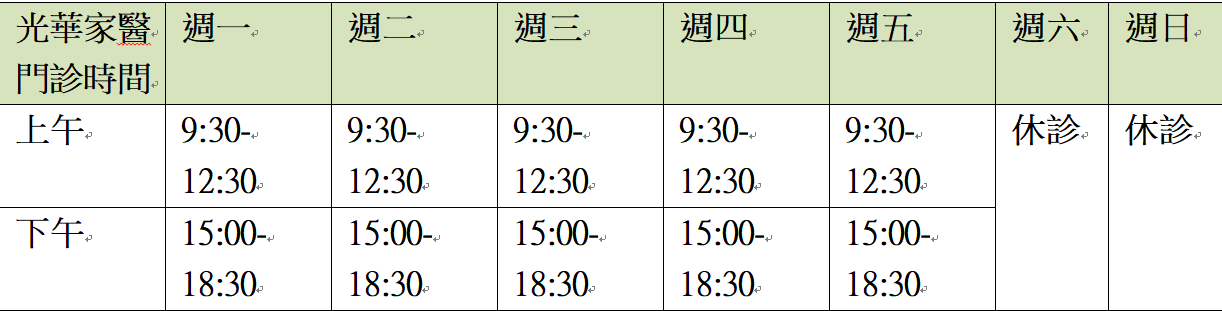 光華家醫門診時間